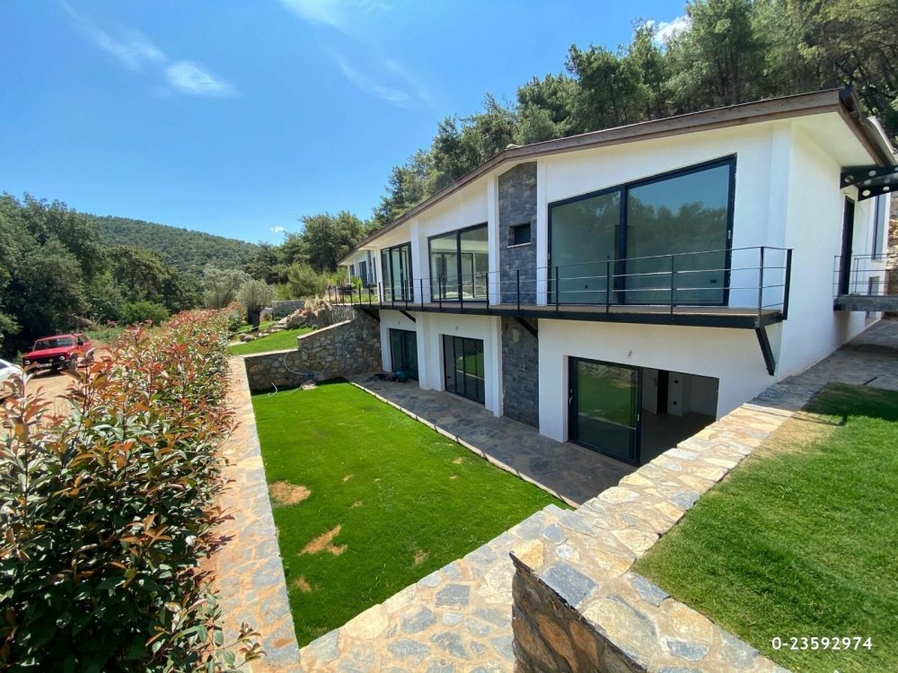 340 metrekare kullanım alanı, 5 yatak odası, her birisi ebeveyn 4 banyo ve ortak kullanım WC , açık mutfak salon mevcut.