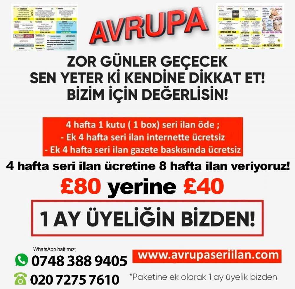 4 hafta seri ilan ücretine 8 hafta ilan veriyoruz.