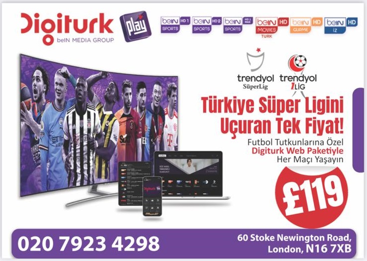 Futbol Tutkunlarına Özel Digiturk Web Paketiyle Her Maçı Yaşayın! Türkiye Süper Ligini Uçuran Tek Fiyat £119 020 7923 4298 60 Stoke Newington Road, London N16 7XB