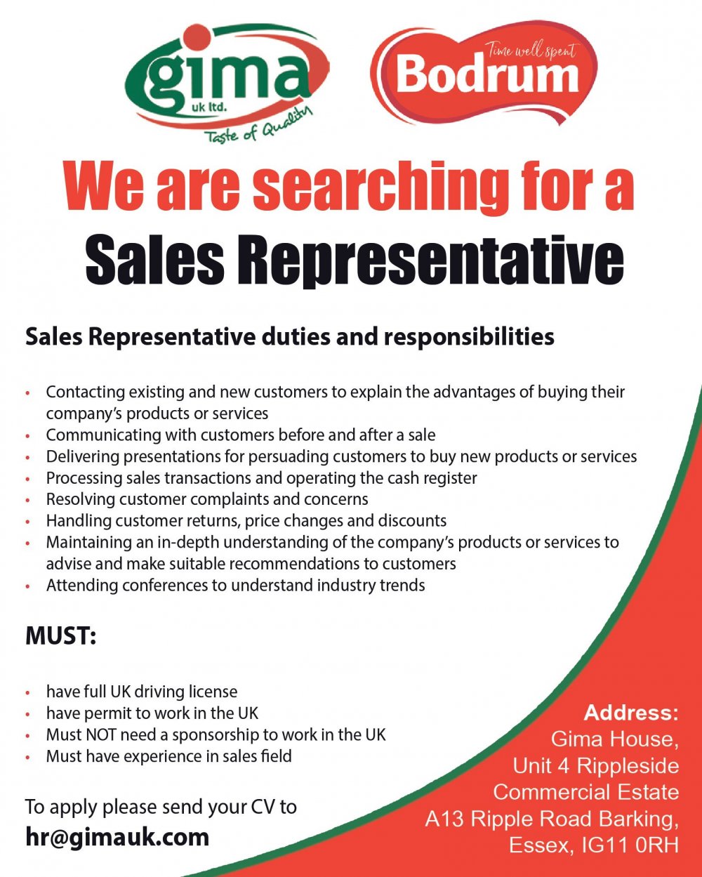 Gima UK de çalışacak Satış Temsilcisi aranıyor!