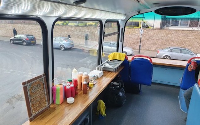 Fikir sahibi Fırat Amara. Londra'nın iki katlı bir otobüsü geçen yılın sonunda bir kebap dükkanına dönüştürmeye karar verdi - ve şimdi açtı. Last Stop Kebab otobüsnde bir kerede 40 müşteri oturabilir ve kebab yiyebilir. Koltuklar orijinal TfL tasarımları içerir.