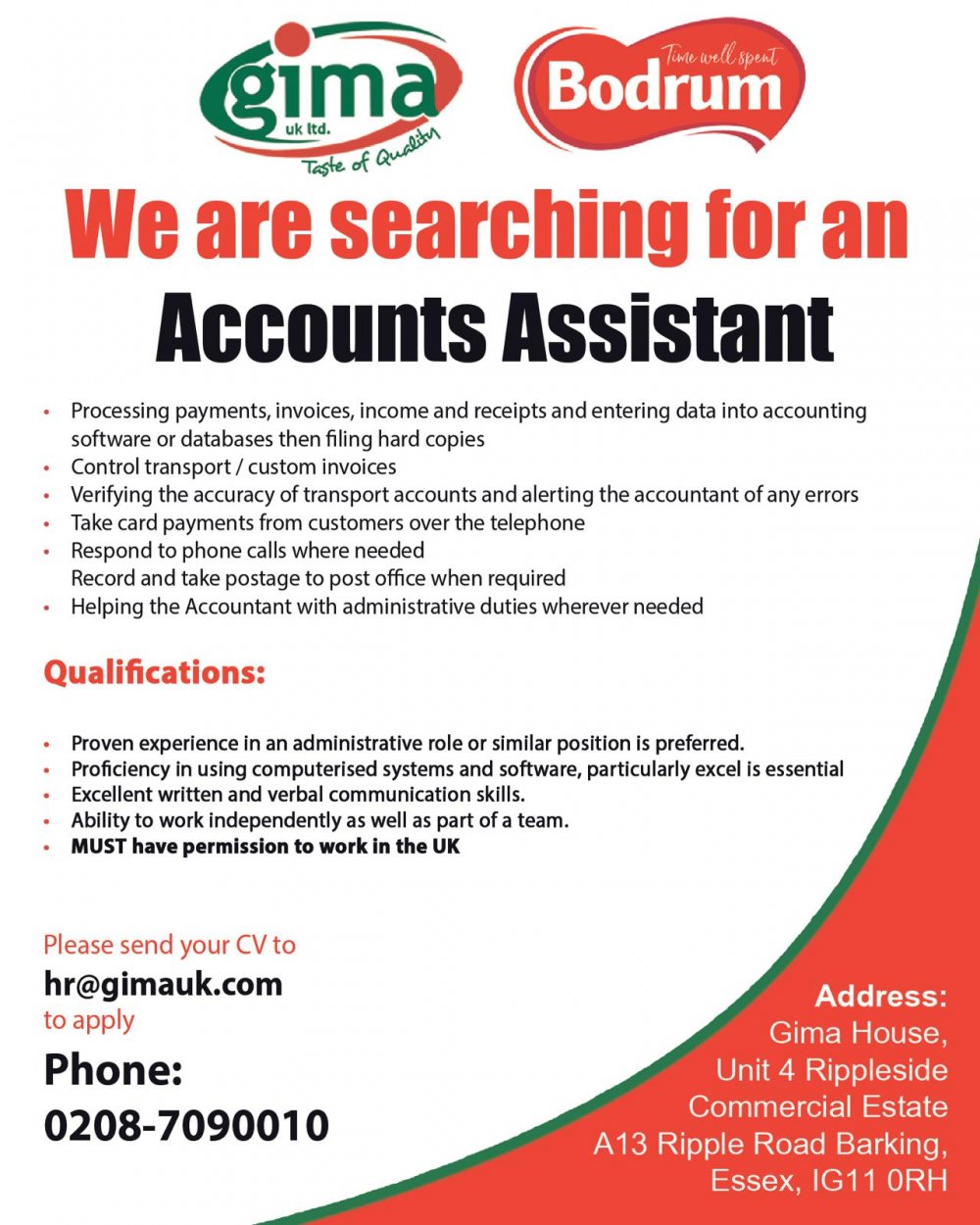 WE ARE SEACRHING FOR AN ACCOUNTS ASSISTANT