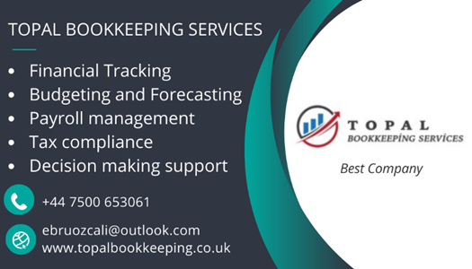 Topal Bookkeeping Services Financal Tracking Budgeting and Forecasting Payroll management Tax compliance Desicion making support ebruozcali@outlook.com www.topalbookkeeping.co.uk